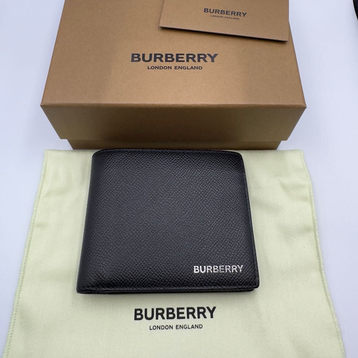 - 極美品 バーバリー 二つ折り財布 ブラック レザー 小銭入れ付き メンズ レディース カードケース コインケース