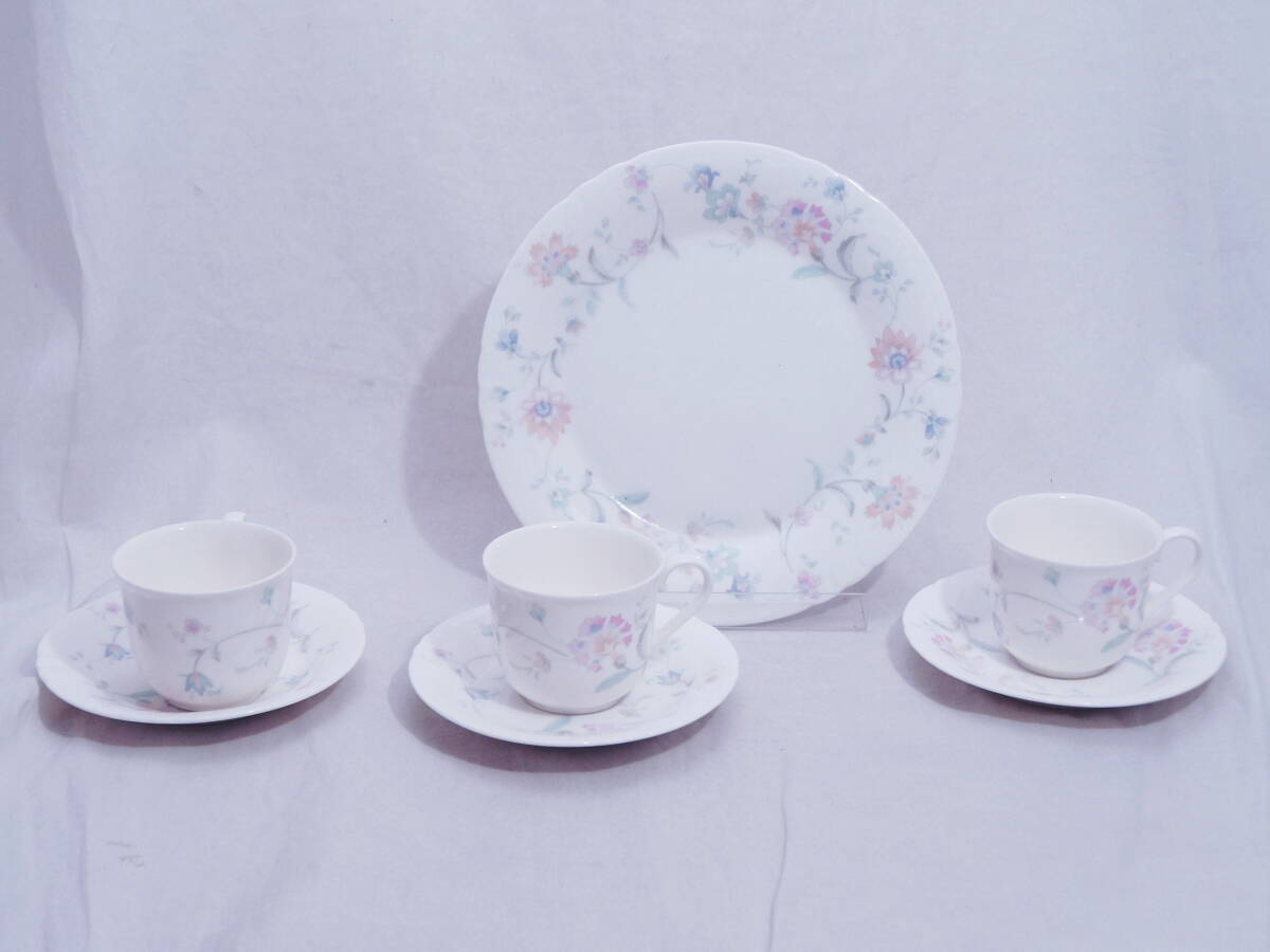 - HOYA/ホヤ パステルカラー花柄 ☆ボーンチャイナ カップ&ソーサー3客セット★大皿1