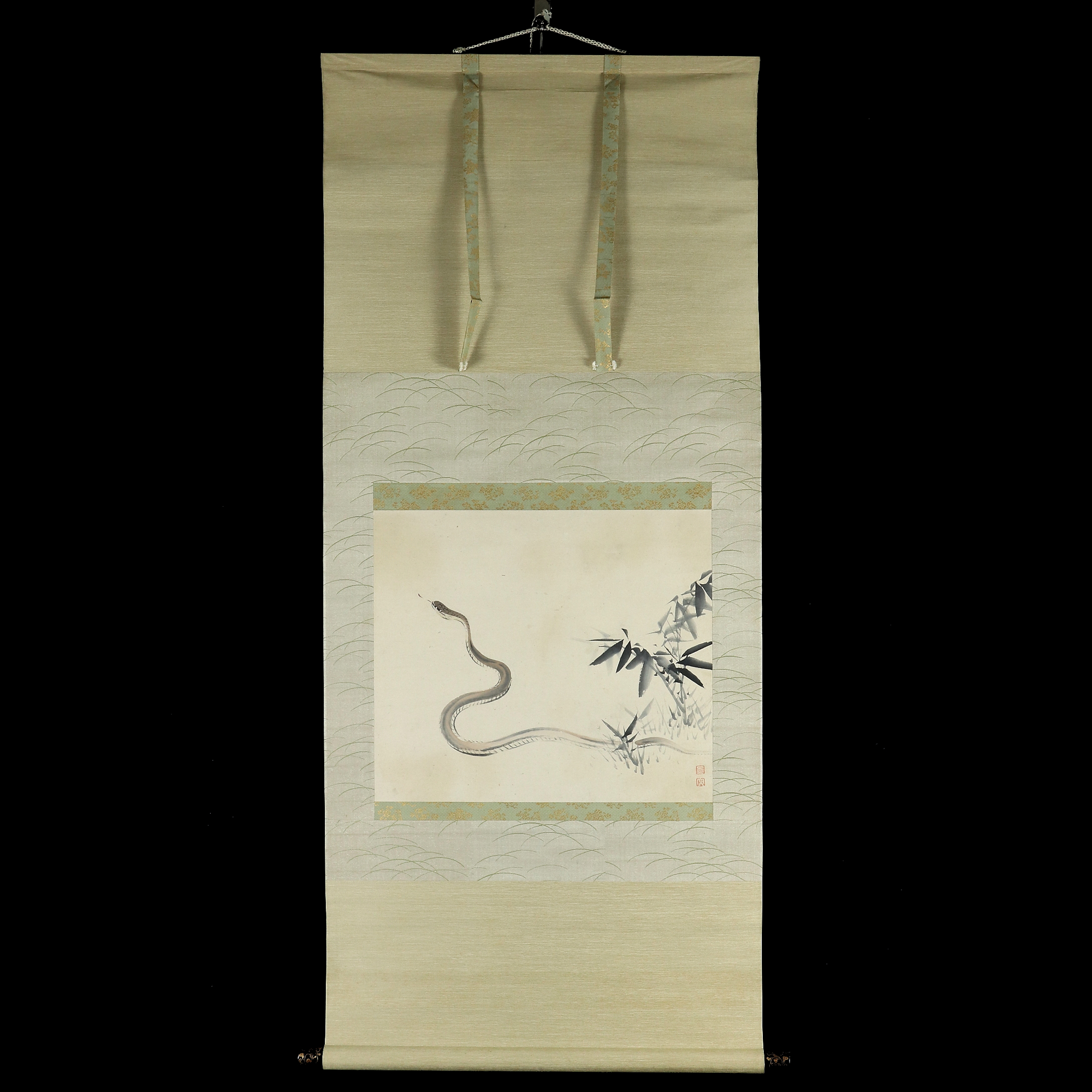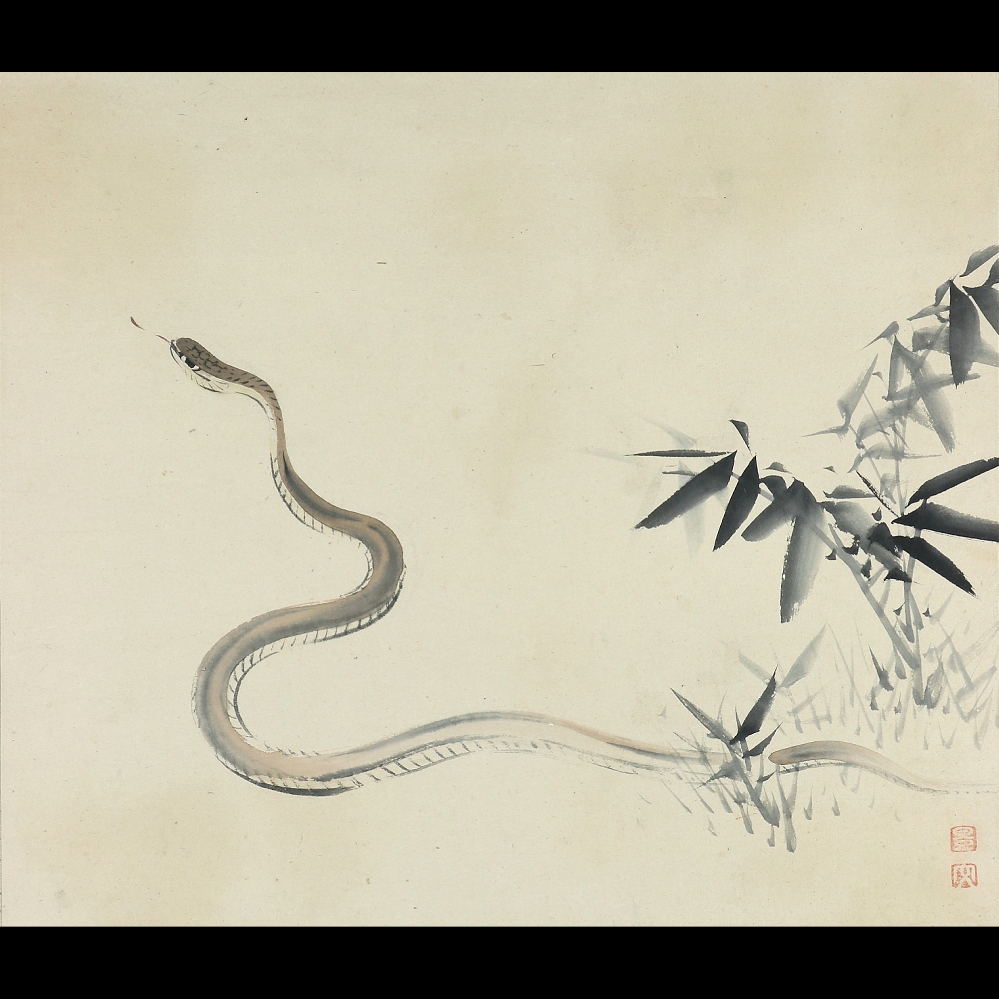 - 70■【真作】松村景文 「蛇図」 松村呉春師事 四条派 紙本 肉筆 掛軸