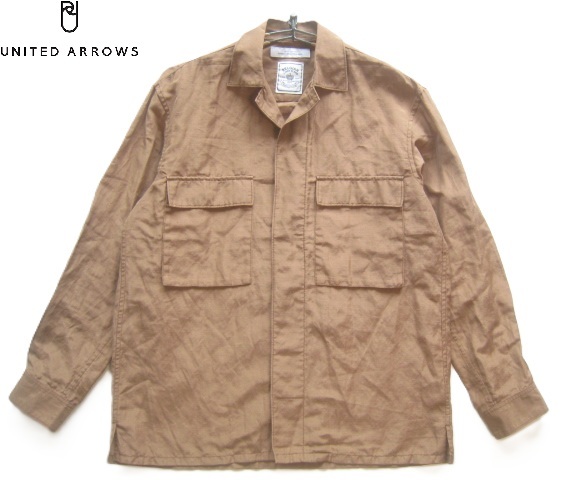 - 美品!!ユナイテッドアローズ UNITED ARROWS*麻60% BELGIAN LINEN EASY CARE ポリリネンミリタリージャケット S 茶 ブラウン