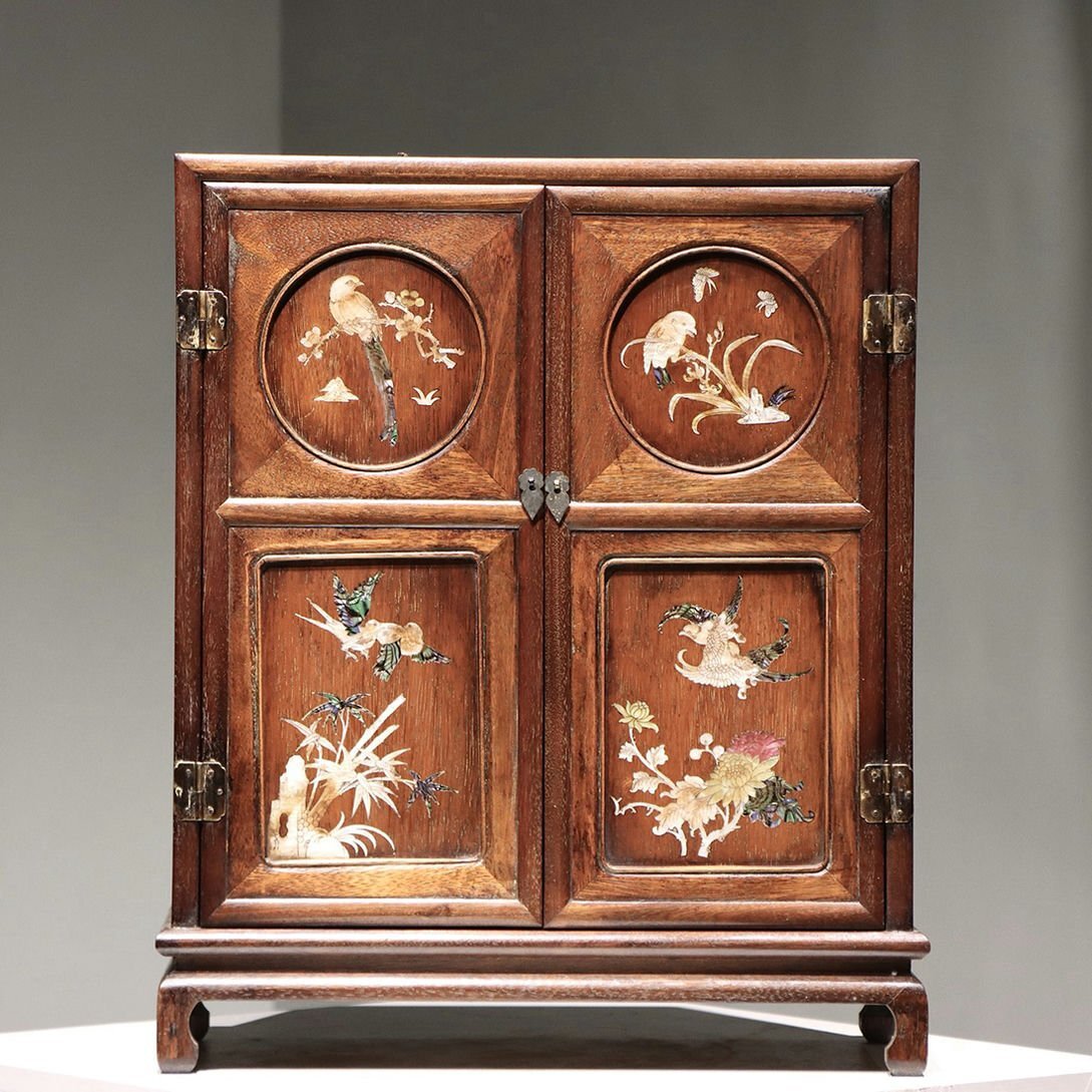- ■観心・時代旧蔵■W1794清時代 黄花梨文房櫃 黄花梨木細密彫 超絶技巧 高手すり 旧蔵家具 珍品旧蔵 古家具