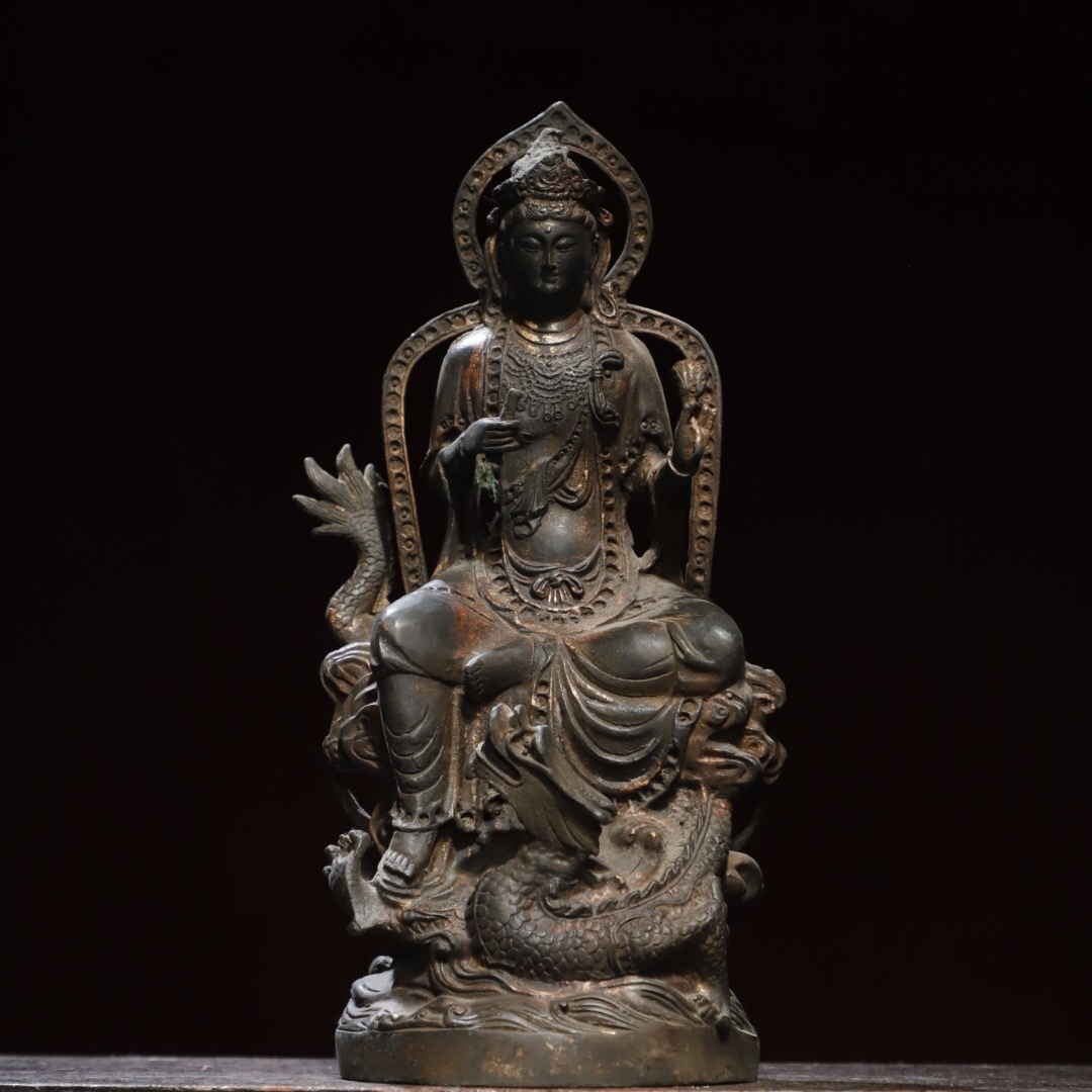 > 【超珍館蔵】銅製 泥金 玉龍觀音像 仏像 宗教 仏教古美術 供養品 古賞物 古董品 古美術品 時代物 旧家蔵出 稀少珍蔵品