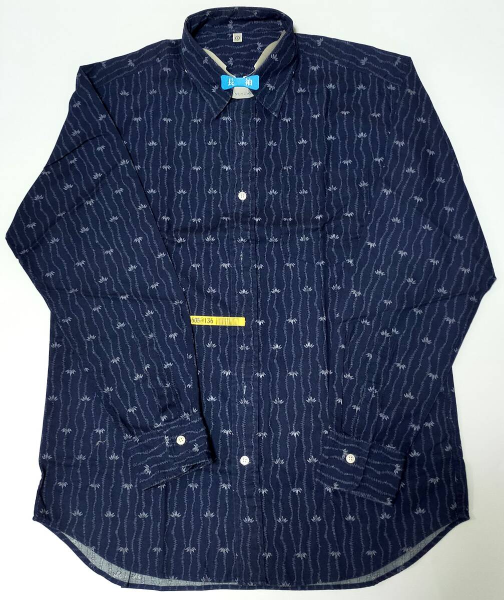 - [美品]ユニクロ ワイシャツ 綿100% クリーニング済み しっかりした作りのYシャツ 紺 竹や笹の柄 Lサイズ 長袖