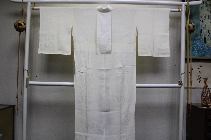 - きもの今昔8610 長襦袢 バチ衿袖無双身頃単衣仕立 正絹白袋綸子縦しぼの強い立体感がある生地 身丈130cm