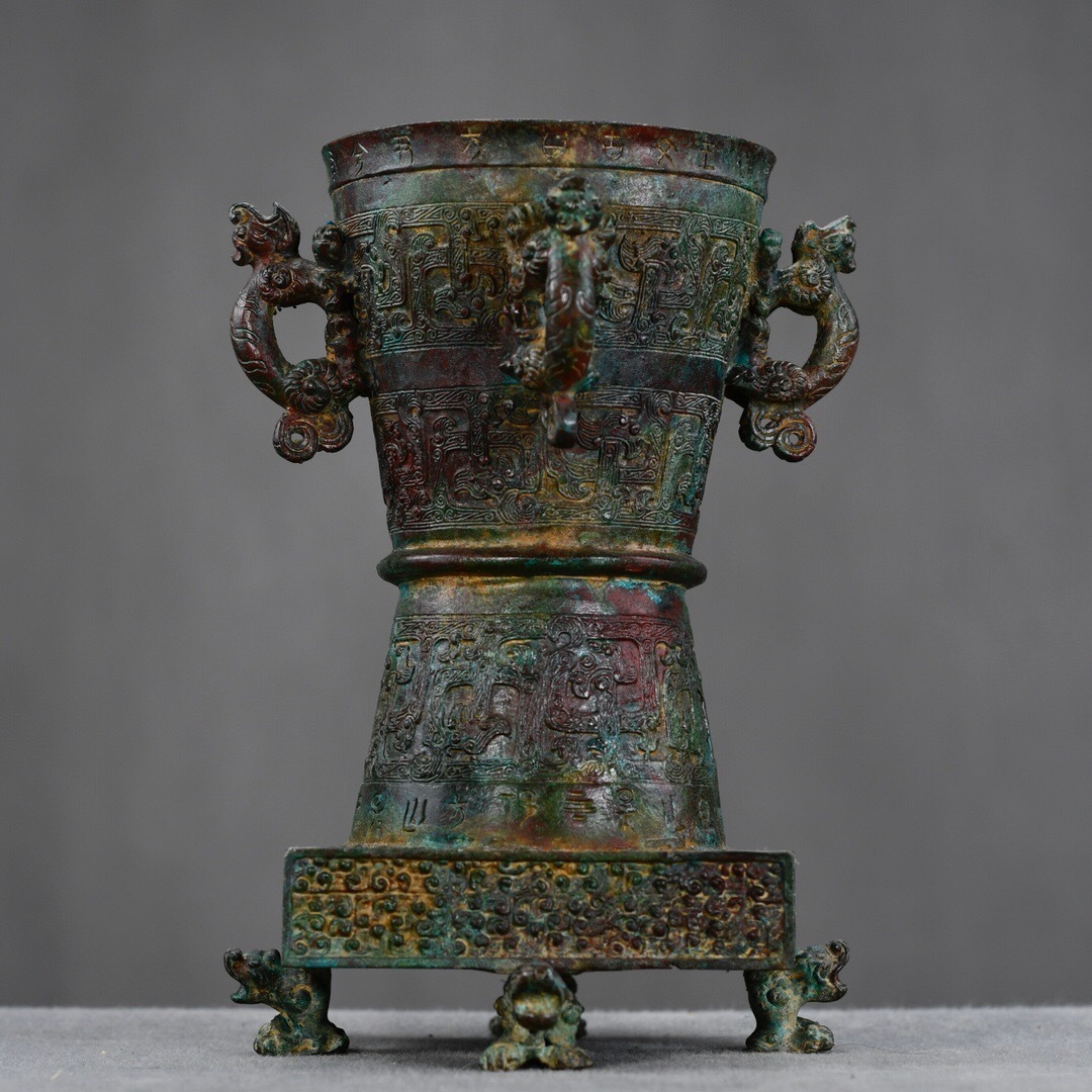 - 【超珍館蔵】戦 青銅製 獣足四龍尊 青銅器 置物 賞物 古賞物 古董品 古美術品 時代物 旧家蔵出 稀少珍蔵品
