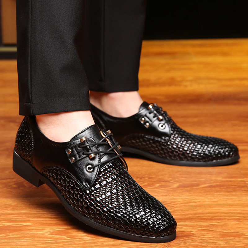 - 人気品メンズ ビジネスシューズ編み込み柄 メッシュ サンダル 紳士靴通気涼しい 夏通勤フォーマルブラック24.5cmサイズ選択可