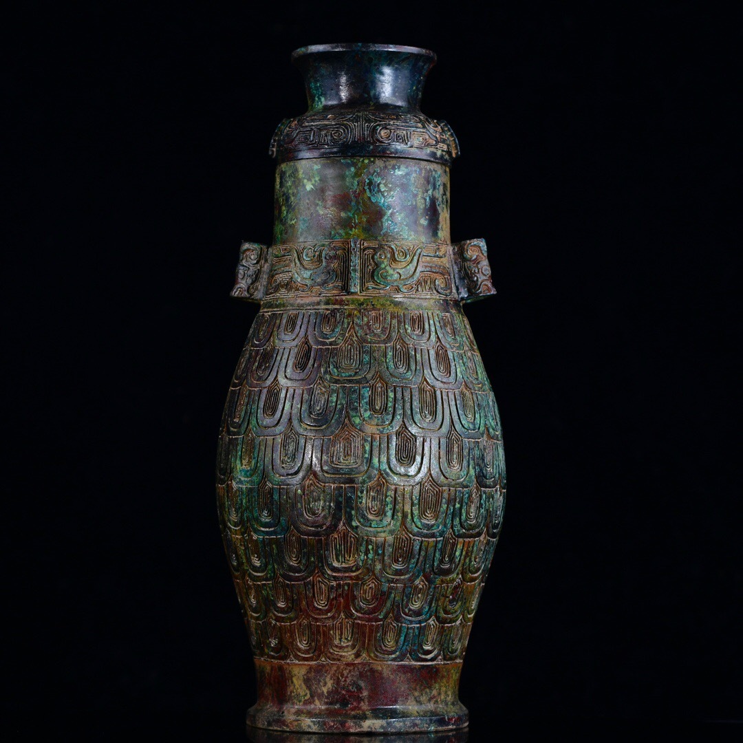 - 【超珍館蔵】商周 青銅製 銘文圓瓶 青銅器 置物 賞物 古賞物 古董品 古美術品 時代物 旧家蔵出 稀少珍蔵品