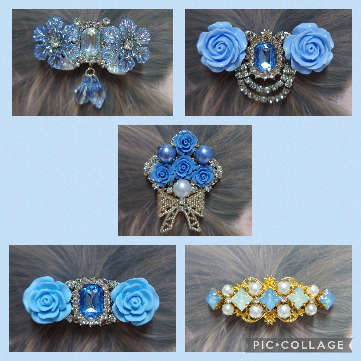 - 【ハンドメイド】ポニーフック★ライトブルー系★5点セット