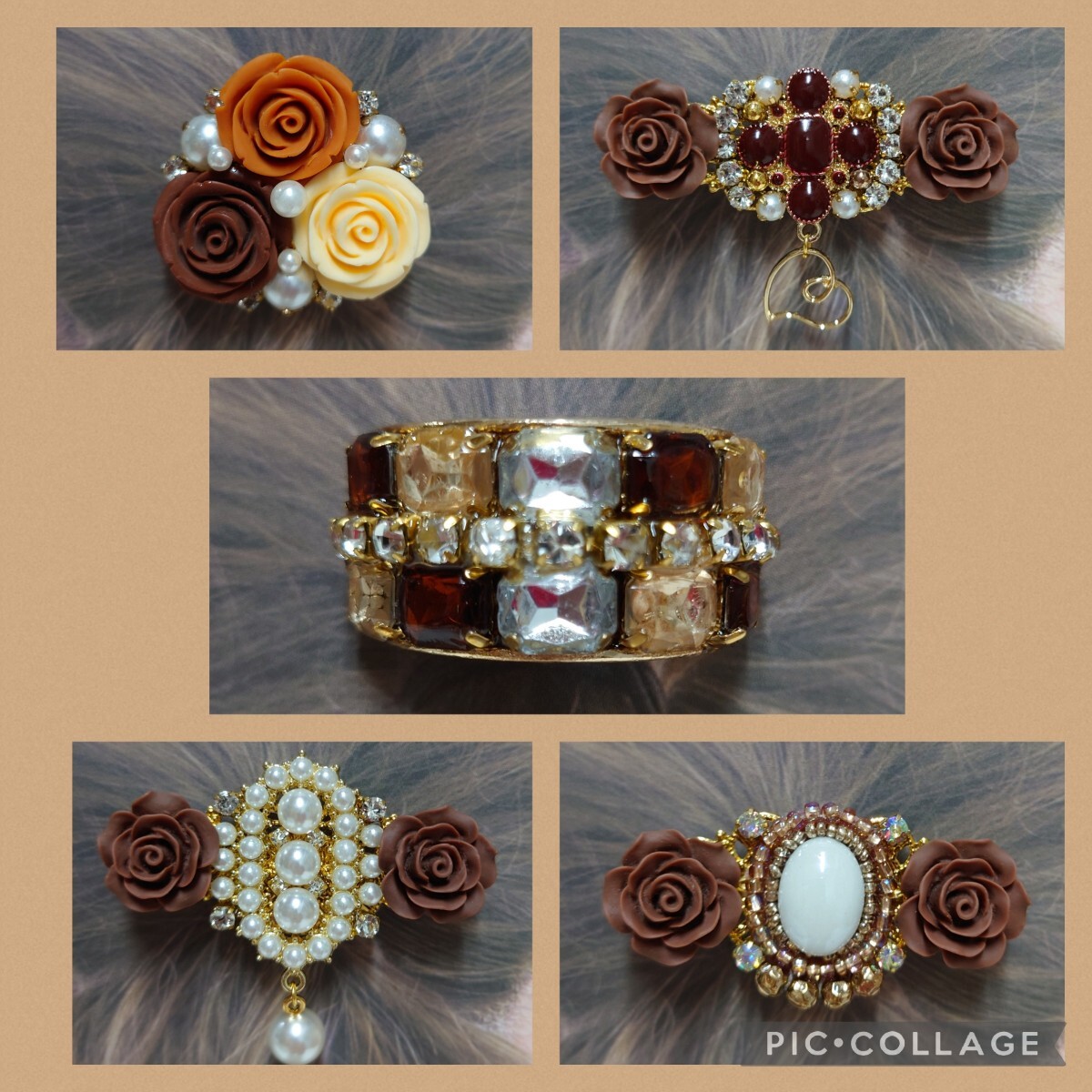 - 【ハンドメイド】ポニーフック★ブラウン系★5点セット