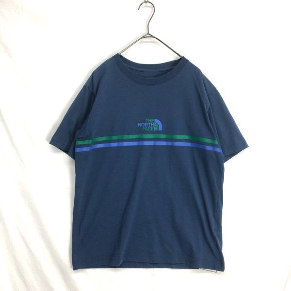 - KZ5784★THE NORTH FACE : NT31809 ラインロゴ プリントTシャツ★M★ブルー系 ノースフェイス