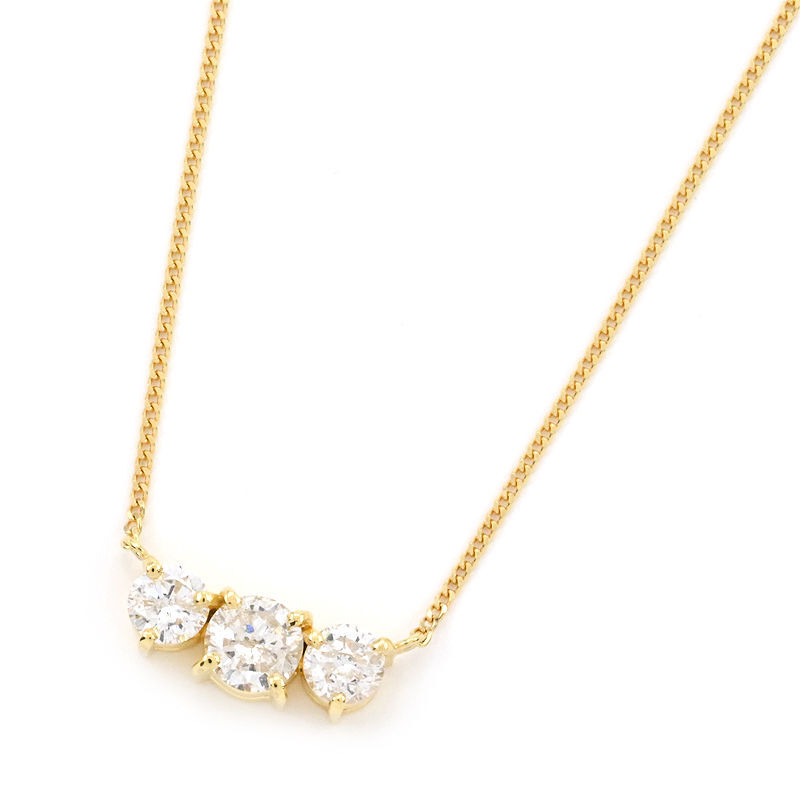 - 1.01ct天然ダイヤモンドネックレス K18YG 3粒ダイヤネックレス 3連ダイヤ トリロジー ペンダント イエローゴールド 地金2.7g 中古 送料無料