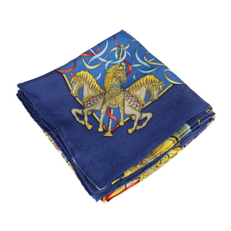 - 超美品 HERMES エルメス LUNA PARK ルナパーク 遊園地 カレ90 スカーフ シルク 青 マルチカラー【本物保証】