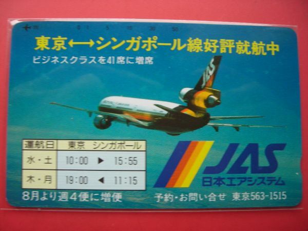 - 日本エアシステム JAS 東京⇔シンガポール 未使用テレカ