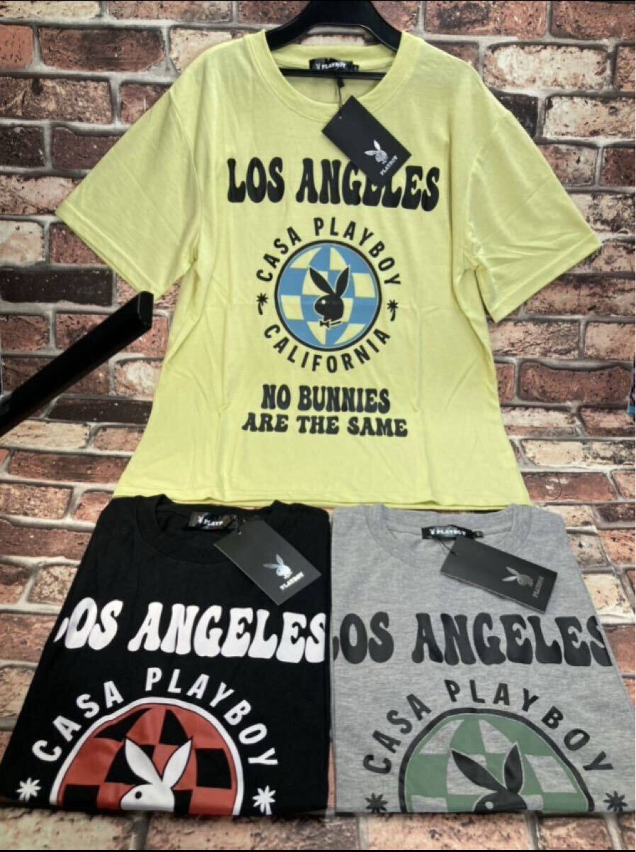 - 送料無料!人気ブランド【プレイボーイ】プリント入り男女兼用 綿混半袖TシャツA(画像から)1枚