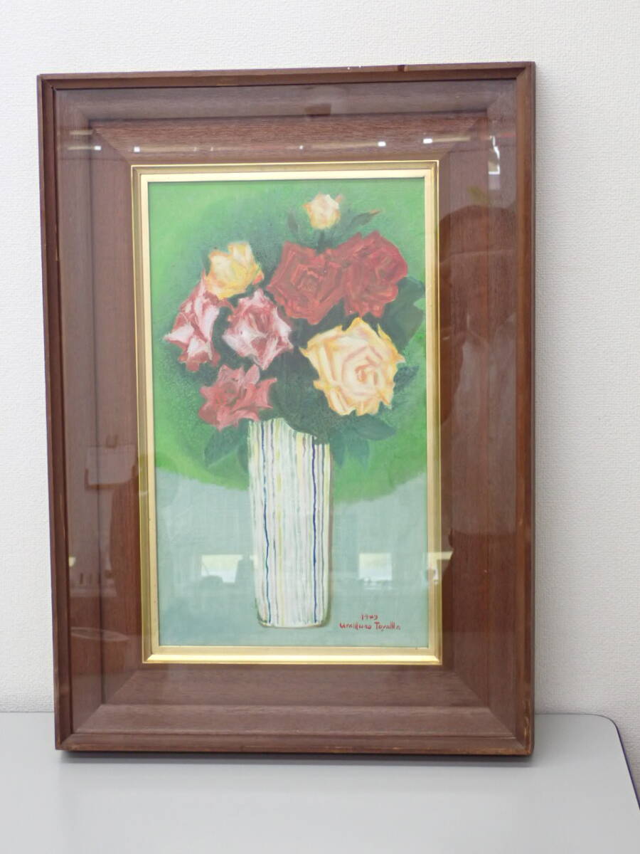 - 86-; (模写・未鑑定品) 外山卯三郎(美術評論家) 薔薇・バラ 油彩 M8号 額装品 静物画 ★