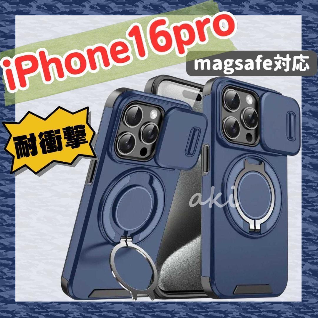 > iPhone16pro ケース 耐衝撃 スライドレンズ 米軍MIL規格 ネイビー