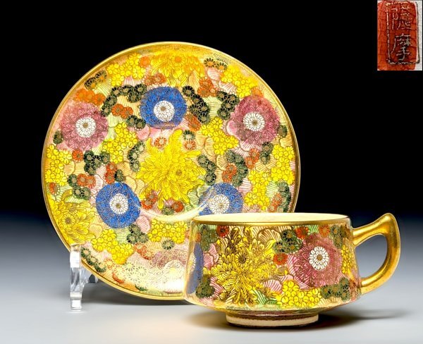 - オールドニッポン 薩摩造 金彩 花尽紋図 カップ&ソーサー【4】 アンティーク ビンテージ 里帰り #468-7