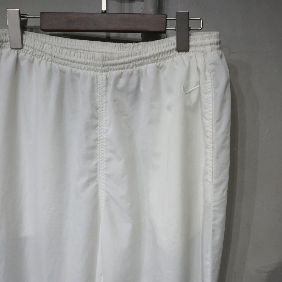 - 【即決】90-00s NIKE ナイキ ナイロン パンツ スウォッシュ 刺繍ロゴ ボトムス ホワイト 白 古着 L
