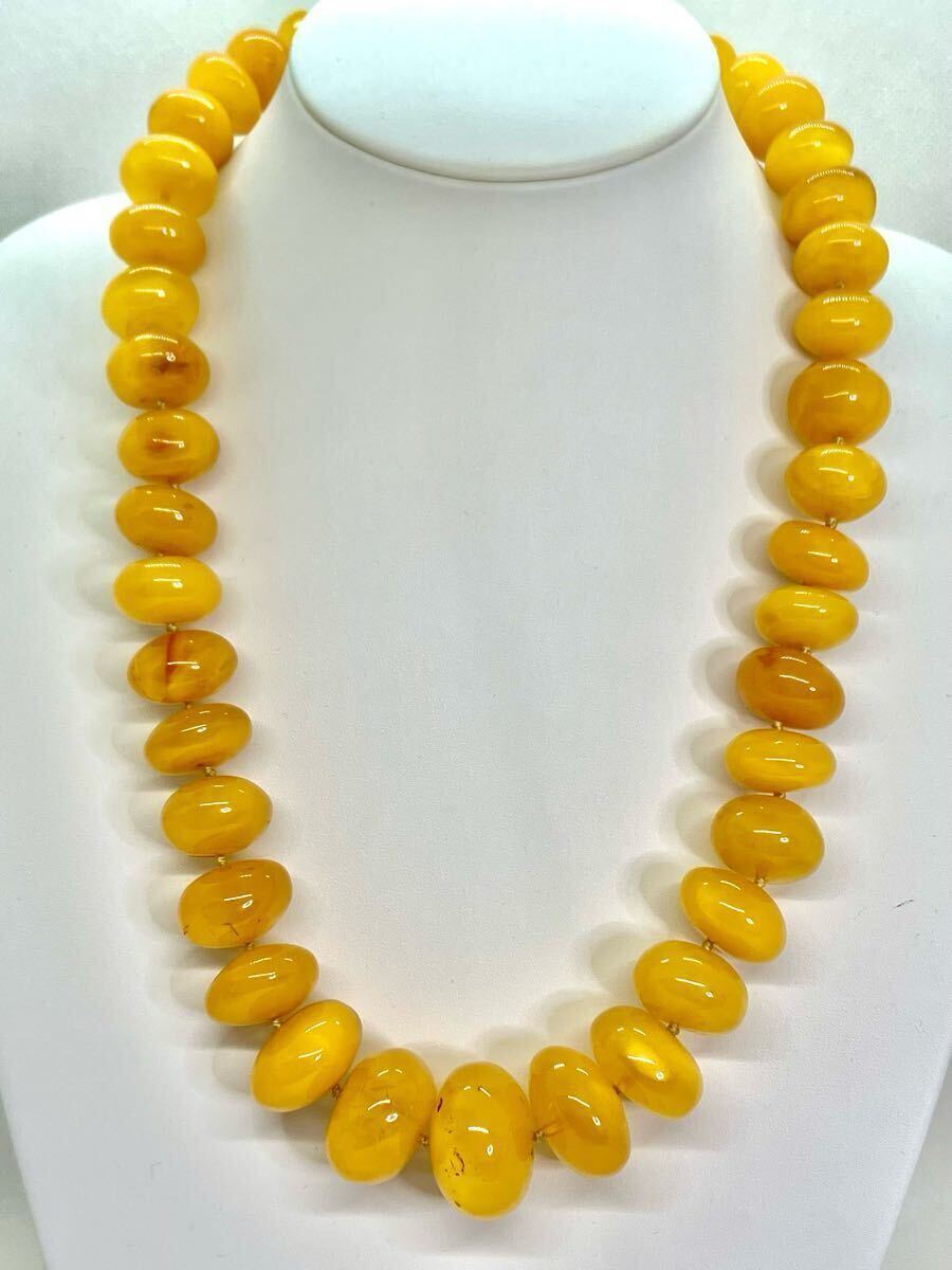 - 【新品】リトアニア産ミルキー大玉琥珀ネックレス*アンバー*希少レア*シンプル一連*こはくコハク**国内最大級*一点もの*乳白色