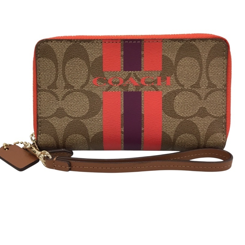 > コーチ(COACH) ストライプシグネチャー Wジップアラウンド ベージュ F54005 【中古】 JA-22848