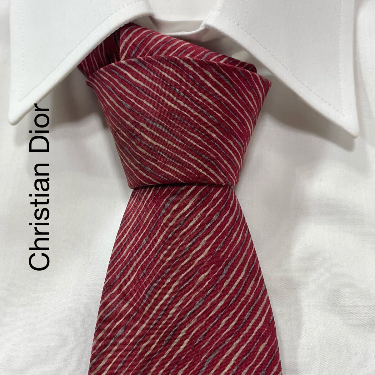 > Christian Dior クリスチャンディオール アート ストライプ シルク ネクタイ ワイン グレー ベージュ TG2391