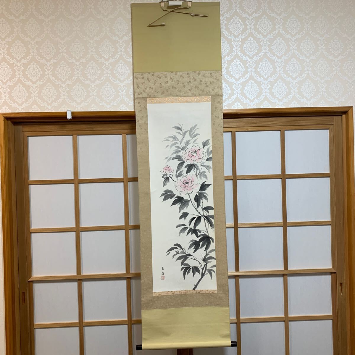 - 掛軸 模写 静物画ボタン 紙箱有り No140
