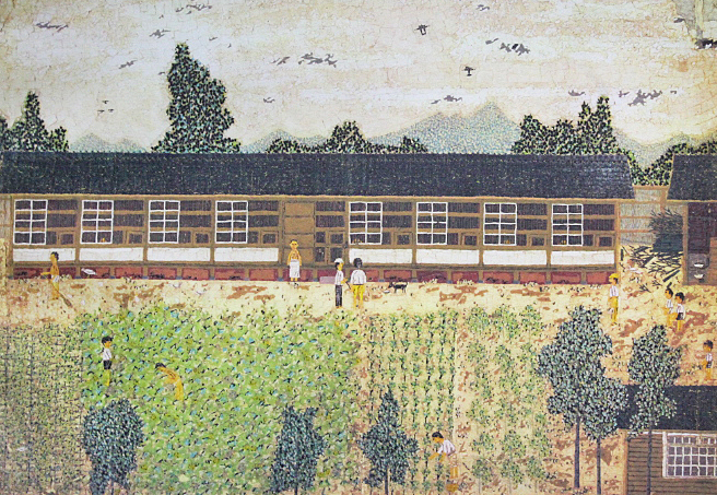 - ■☆山下清 【田舎の学校】 リトグラフ 印章有り エディション有り