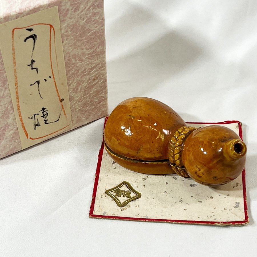 > 打出焼「ひょうたん 香合」金彩 共箱 幅 約8.5cm×約4cm 高さ 約4cm 陶器 香入れ 茶道具 茶器 うちで焼 ◇PJ-1566