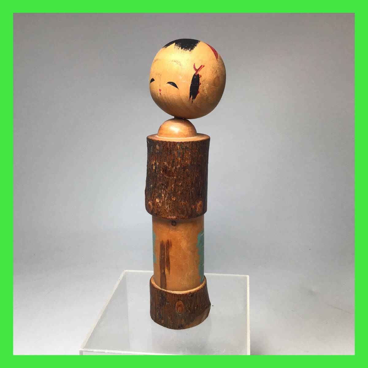 - AZ0108☆ こけし 胴体に川のような絵柄が描いてある 創作こけし 工芸品 民藝 伝統 お土産
