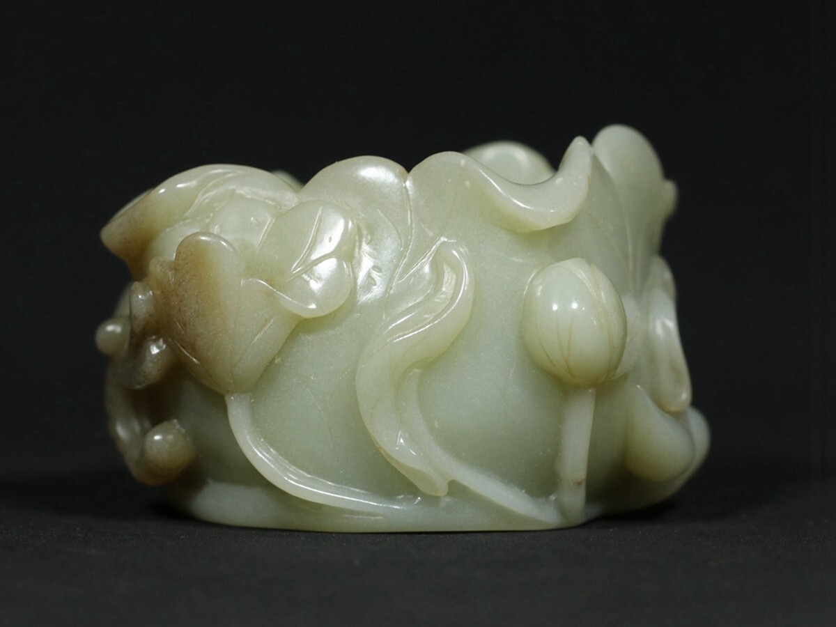 - 「清時代 和田玉 彫り 一品清廉 多子多福 蓮子 荷花 蜻 蓮藕 筆洗」極細工 擺件 中国古賞物 古美術 旧蔵出
