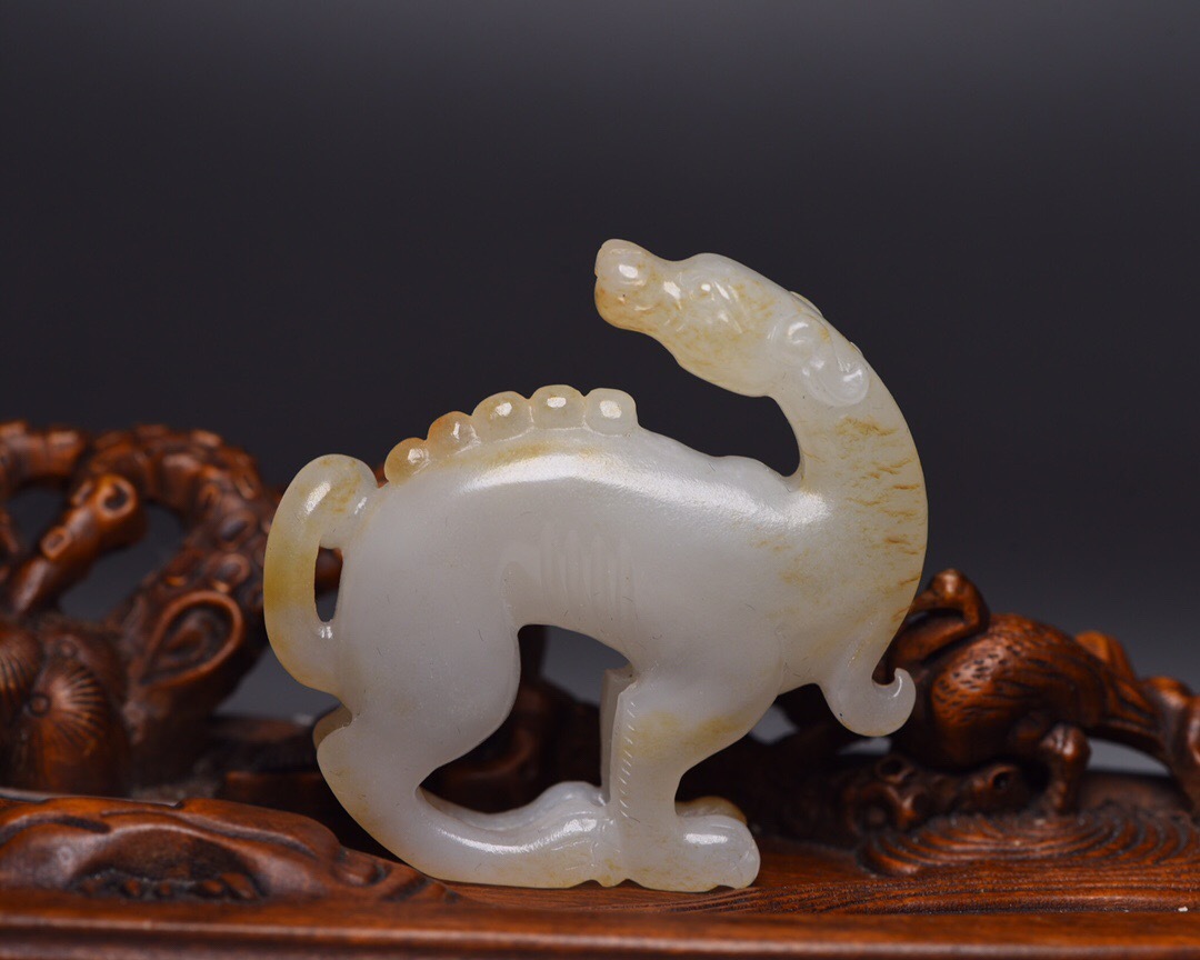 - 『館蔵珍品 和田玉製 細密彫 旺財 置物 賞物』稀少珍蔵品 古賞物 貴重物品 収蔵品 中国古美術 時代物 古董品