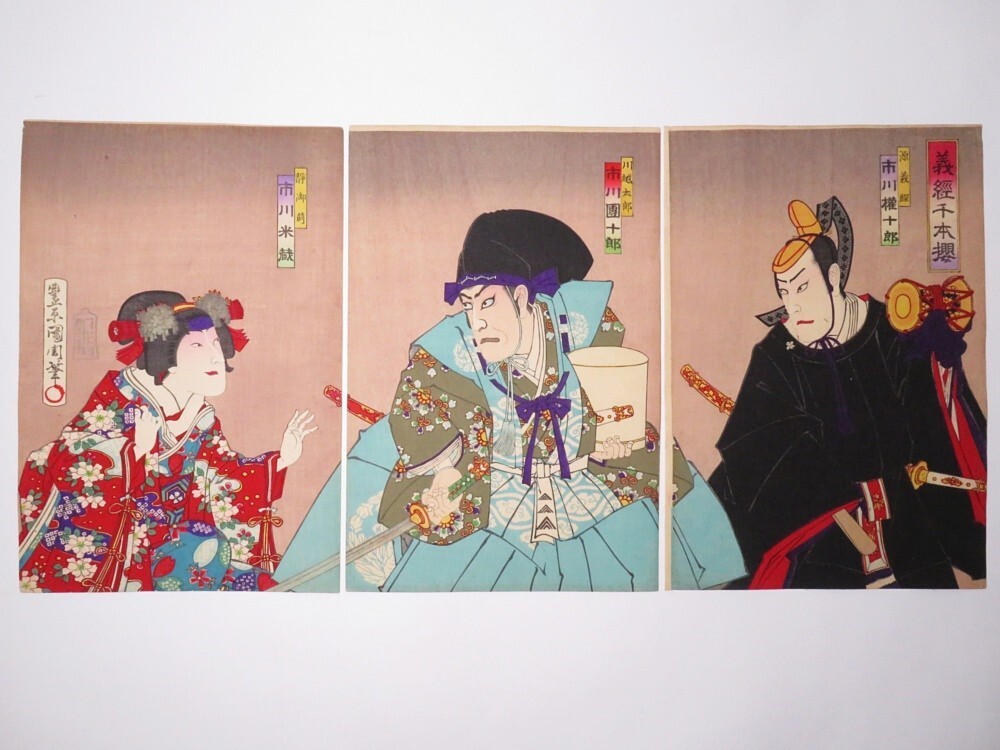 - 【10564】江戸~明治 木版画/浮世絵 豊原國周 歌舞伎 人物図 3枚綴り(初品・買取品)