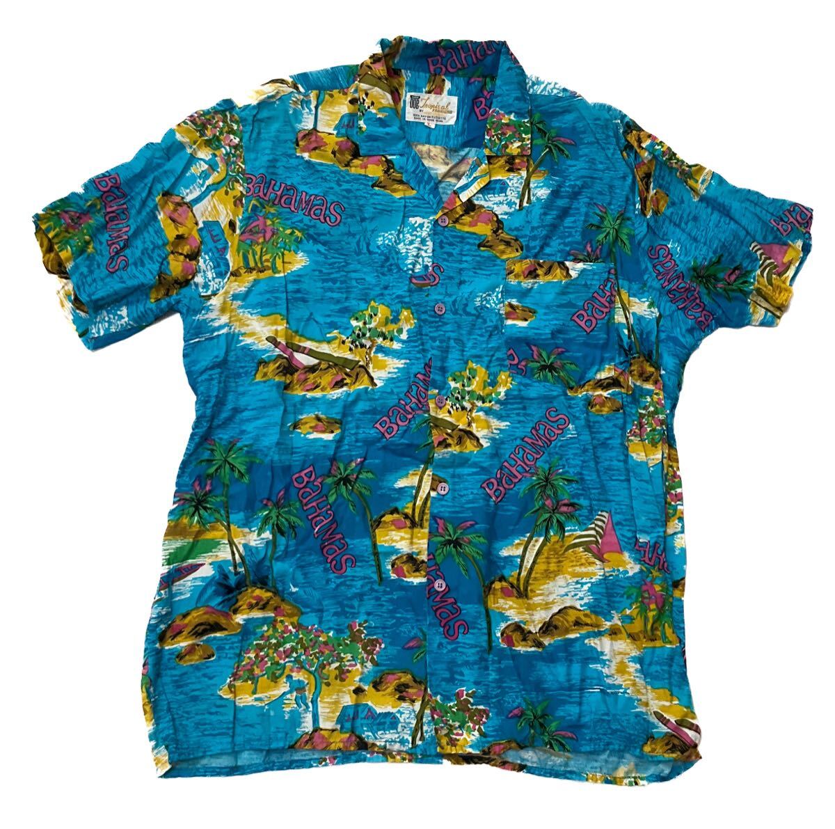 - 90年代 Bahamas made in Hong Kong 総柄 ハワイアンシャツ アロハシャツ Lサイズ ビンテージ レーヨン