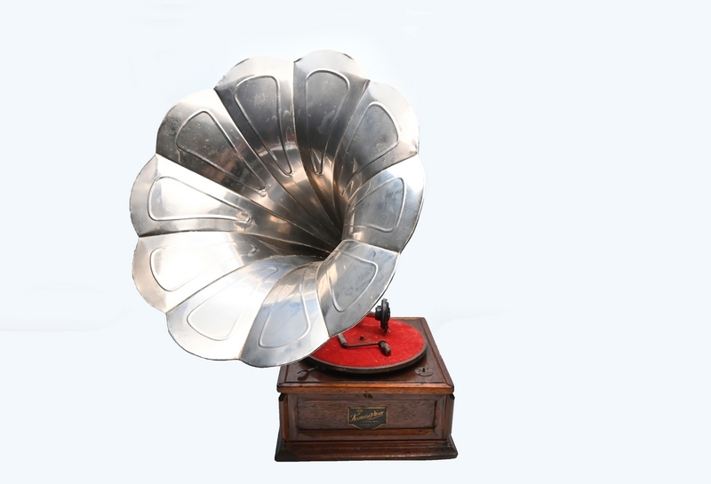 - ラッパ 蓄音機 ■ KOMATSU PHONE ラベル ■ラッパ径約56cm 存在感あるお品物 アンティーク 骨董 ■
