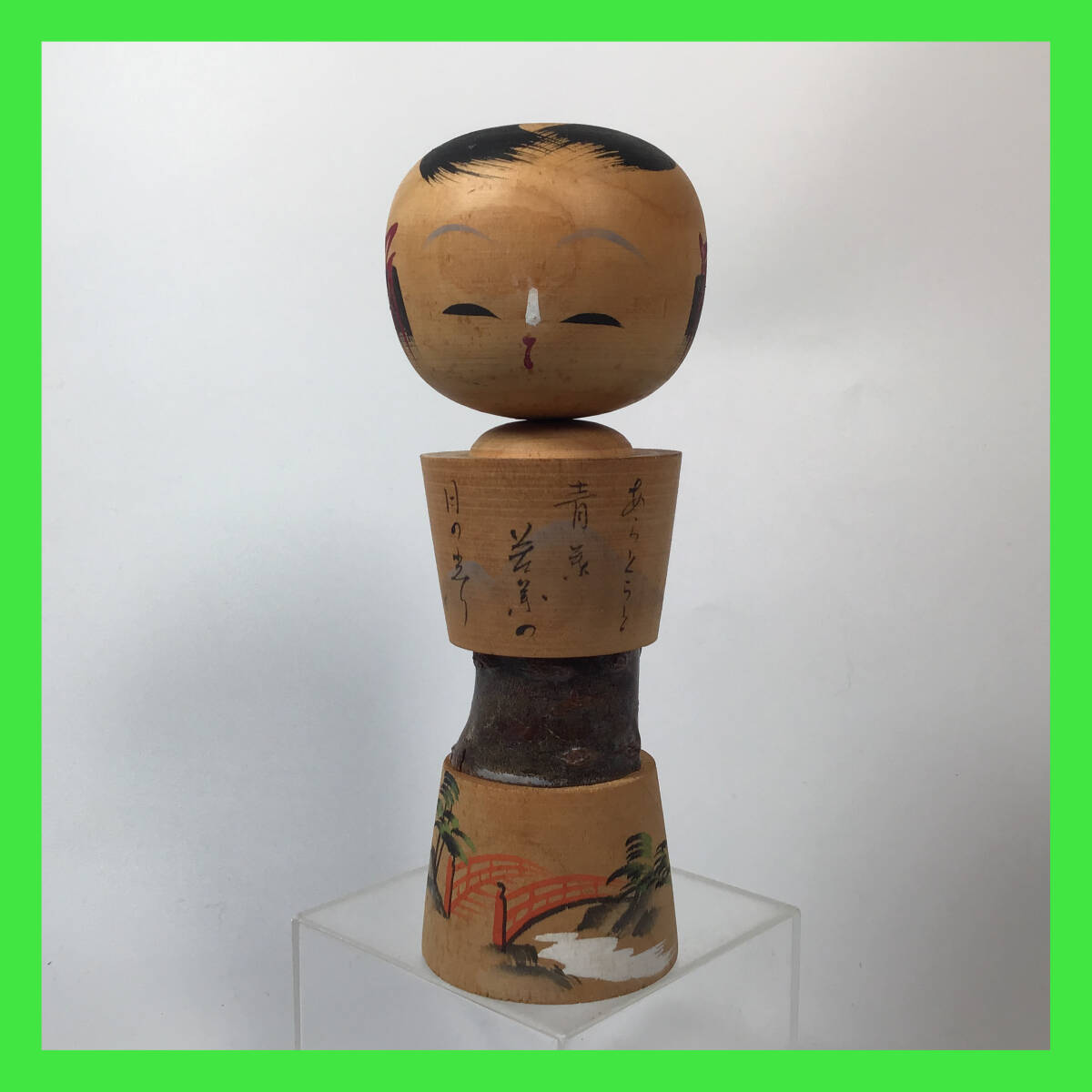 - AZ0119☆ こけし 赤い太鼓橋と詩が描かれている 日本人形 お土産 伝統 民藝 工芸品 木工