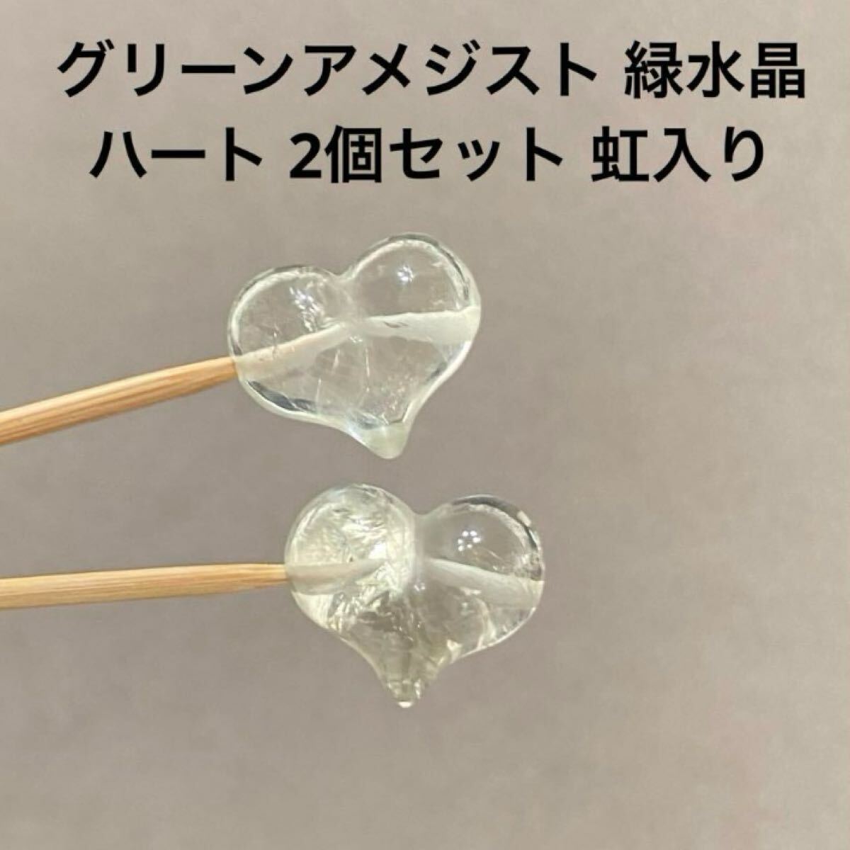 - D237 グリーンアメジスト 緑水晶 ハート 2個セット 虹入り
