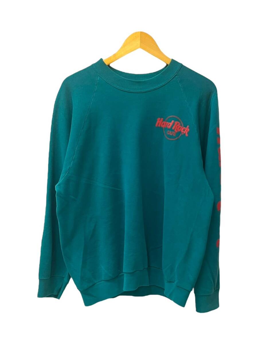 > HARD ROCK CAFE (ハードロックカフェ) US古着 90s 00s バックプリント トレーナー 裏起毛 USA製 L グリーン メンズ/027
