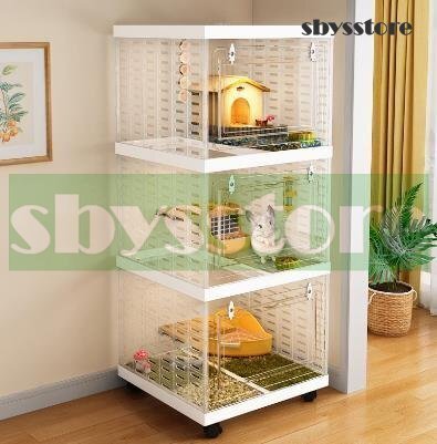 - 3層 小動物ケージ 飼育ケージ 通気性 ハムスターケージ ハムスターハウス 透明 組立式 持ち 厚手タイプ 脱出にくい