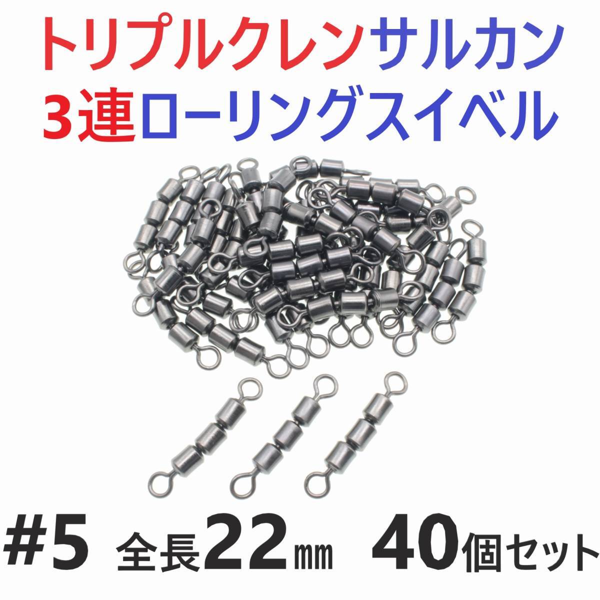 > 【送料150円】トリプルクレン サルカン 3連 ローリングスイベル #5 全長22㎜ 強度32㎏ 40個セット 強力ヨリモドシ 超回転で糸ヨリ解消!