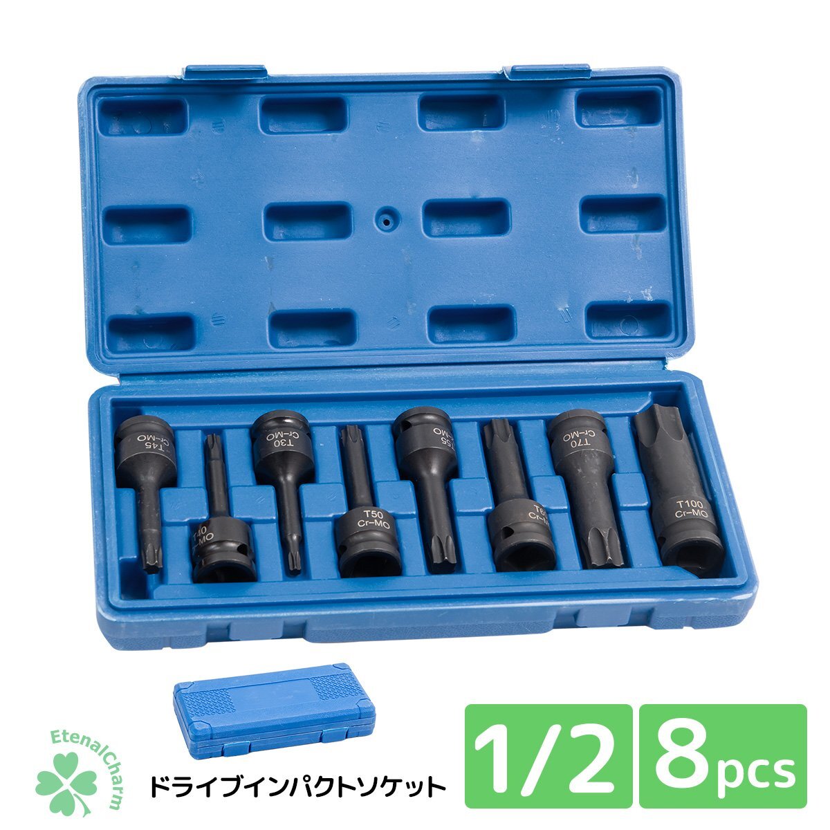 - 【送料無料】インパクト用トルクスビットソケットセット 1/2インチ差込 8本組(T30~T100)スタービット ドライブソケット 自動車整備用