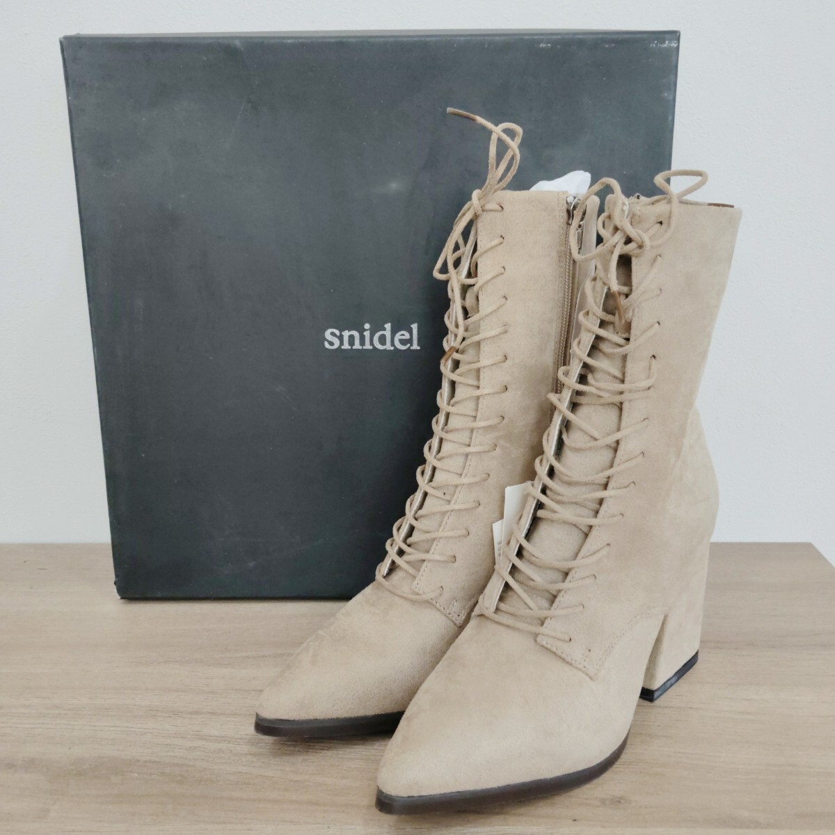 - snidel スナイデル ショートブーツ 22.5〜23.0cm レースアップ ゴールド ベージュ GLD レディース