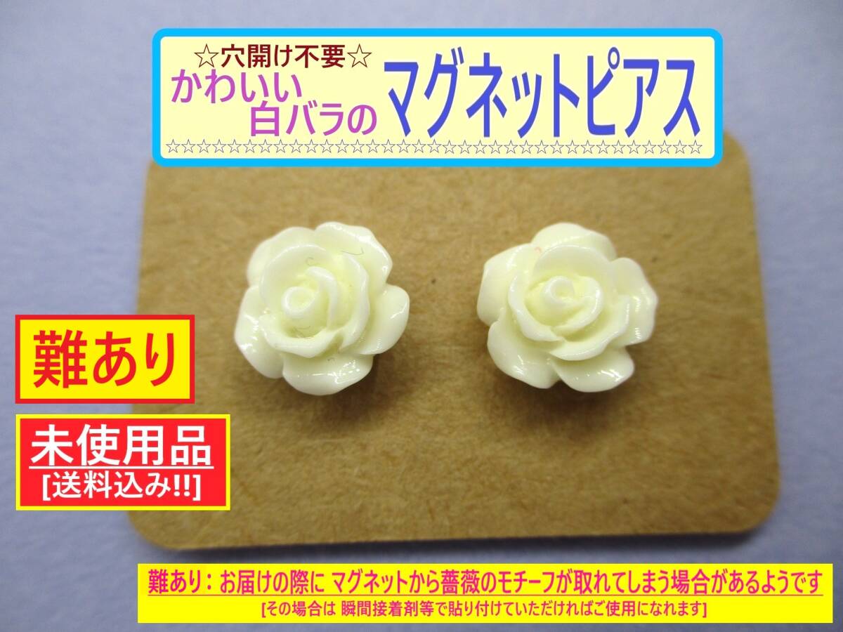 > 難あり 未使用 穴あけ不要 かわいい 白 薔薇 マグネット ピアス N 磁石落ち 長期保存 バラ 花 ホワイト ローズ ノンホール 海外製 詳細不明