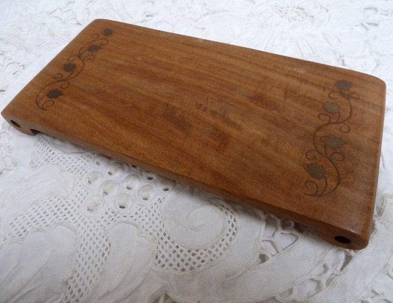 - (☆BM)木製 置台 飾り台 象嵌 横幅21㎝ トレイ コレクション台 プレート アンティーク調 レトロ ミニ 小ぶり 小さいサイズ 平卓