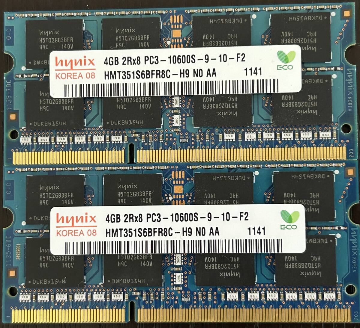 - 即決 動作確認済み hynix ハイニックス SO-DIMM 204pin DDR3 PC3-10600S 4GB×2枚 ノートパソコン用 704
