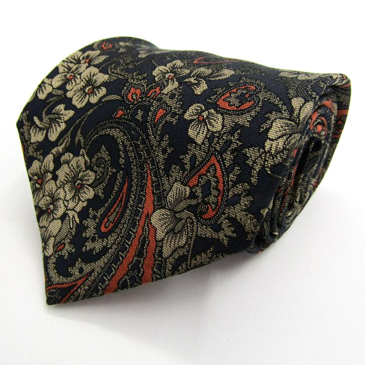 - アクアスキュータム ブランド ネクタイ シルク ペイズリー柄 花柄 PO メンズ ネイビー Aquascutum
