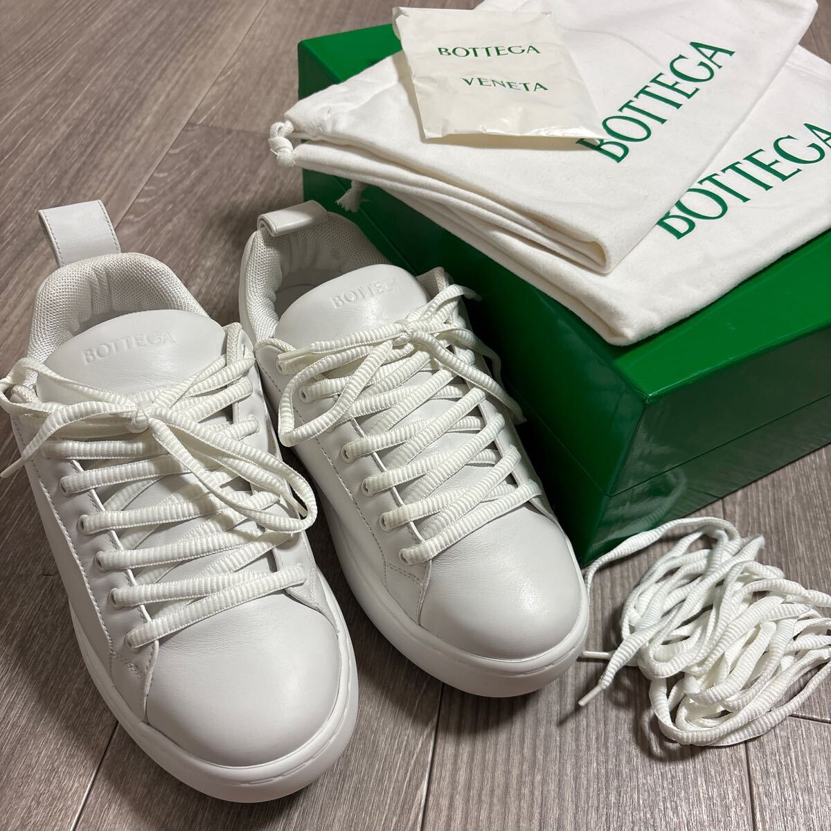 > HA1290 未着用 BOTTEGA VENETA スニーカー LOW size42 SNEAKER レザー TENNIS CALF LEATHER OPTIC WHITE-PARAKEET レースアップ