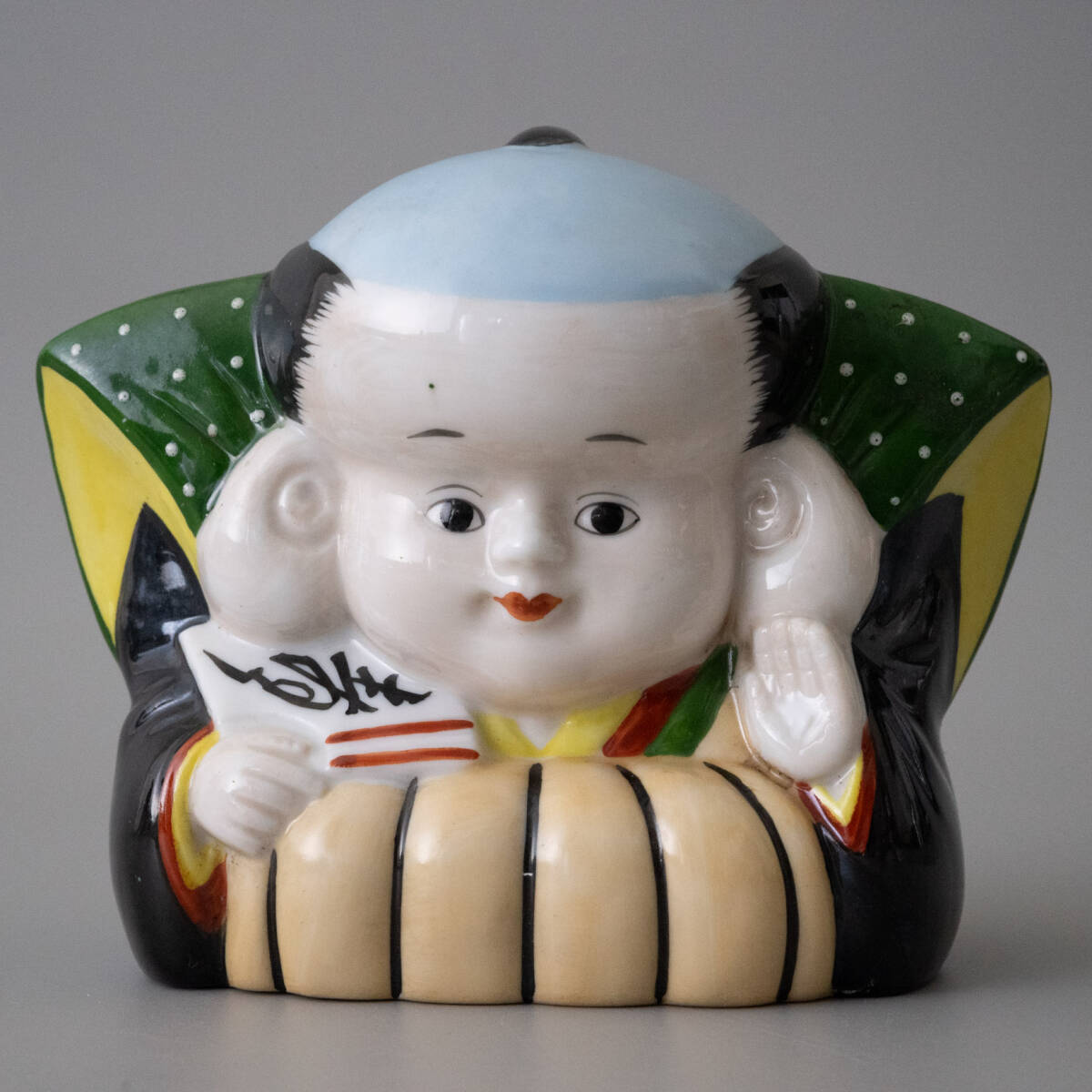 - アンティーク 陶器製 福助 ふく助 FUKUSUKE 置物 オブジェ 磁器 陶器 縁起物 商売繁盛 開運 時代物 古美術品 骨董