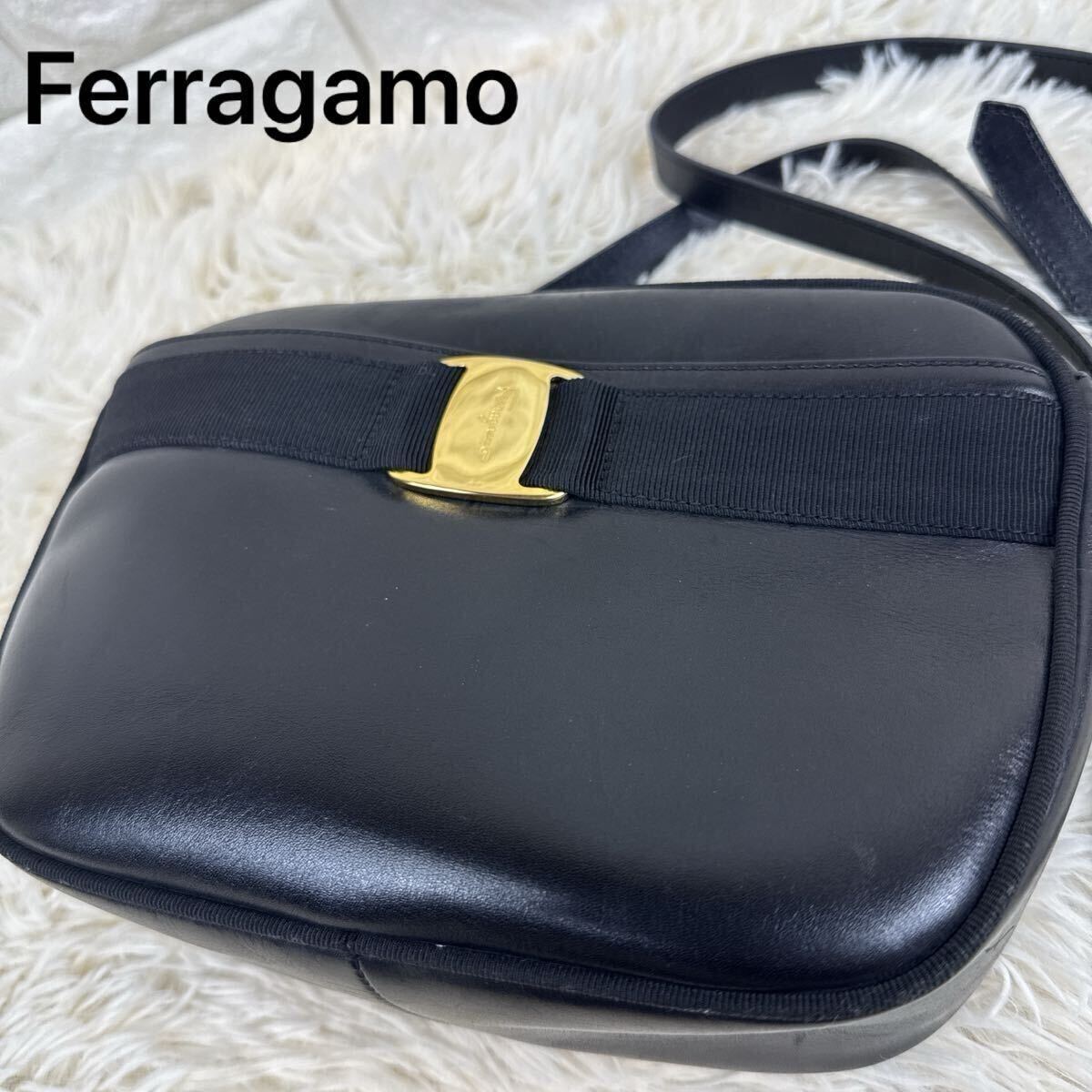 - Salvatore Ferragamo フェラガモ ヴァラ ショルダー バッグ レザー 黒