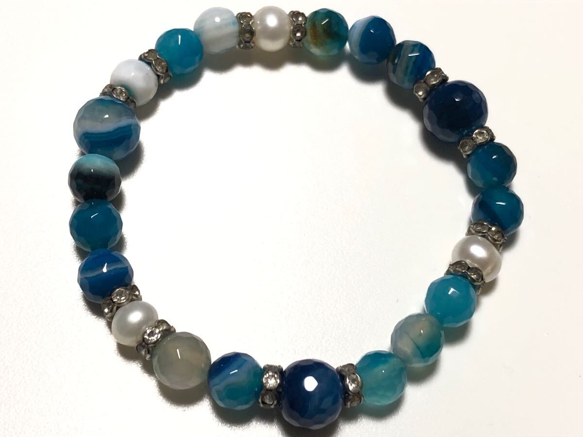 - ブルーレースアゲート バロック真珠 18.5g ブレスレット【検/縞瑪瑙】