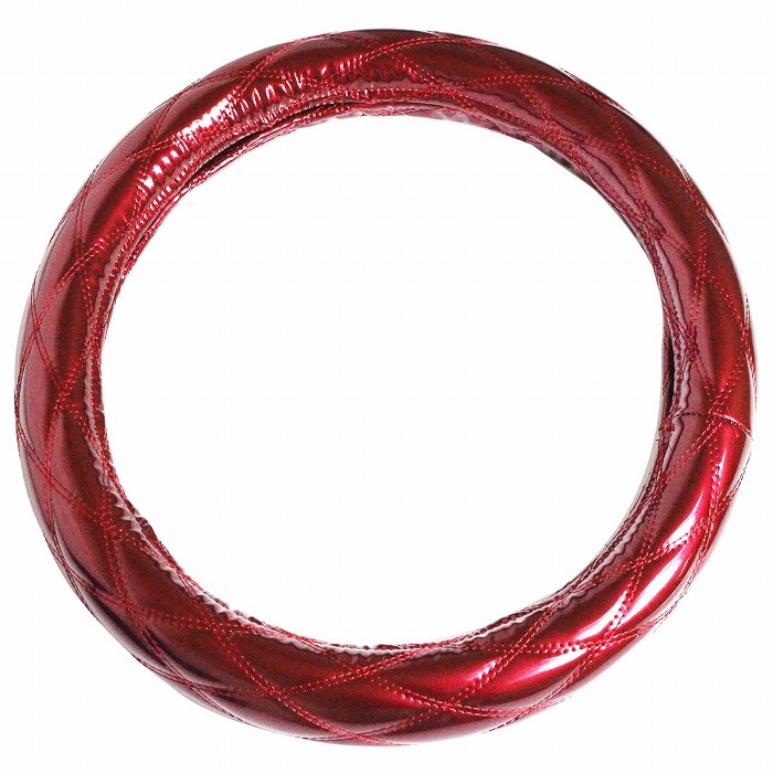- 極太 太巻き エナメル ダブルステッチ ダイヤカット ハンドルカバー 艶レッド×赤糸 Lサイズ 日野 4t レンジャープロ